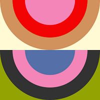 Cirkels opnieuw gemonteerd in sterke heldere kleuren, een statement op elke muur.