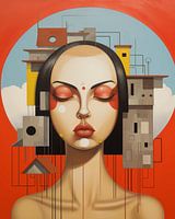 Japans meisje banksy wabi sabi japandi style neutrale kleuren (gezien bij vtwonen)Dream Designs art work Wabi-sabi japandi style Vluchtige Emoties japans meisjeDream Designs art work