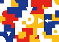 Een collage geïnspireerd op de zo bekende geometrische vormen en typerende kleuren van Bauhaus.