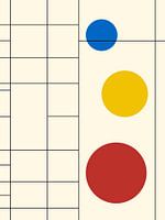 Speels werk door de gekleurde cirkels in combinatie met het zwarte lijnenspel.