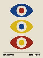 Een op Bauhaus geïnspireerde print met ogen in de primaire kleuren blauw, geel en rood. Door de beige achtergrond krijgt het minimalistische werk een warme look. Leuk te combineren met mijn andere Bauhaus poster en prints.