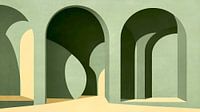 Klassiek Bauhaus-boogarchitectuurschilderij in saliegroene kleuren.