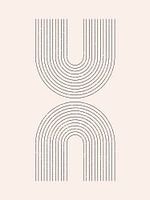 Deze serie moderne abstracte kunstwerken heeft zwarte gewelfde vormen tegen een zachte gebroken witte achtergrond, vaak met een licht verweerde textuur. Geïnspireerd door Bauhaus ontwerpprincipes en mid-century moderne esthetiek, benadrukt elk stuk strakke lijnen, geometrische herhaling en subtiele imperfectie.