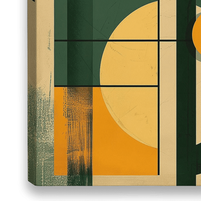 Deze poster in Bauhaus-stijl combineert strakke lijnen en rijke kleuren tot een kunstwerk dat een vleugje moderne elegantie toevoegt aan elke omgeving.