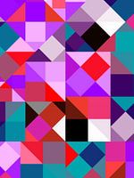 Grafisch spel met ruitjes die door middel van overlays worden gecombineerd tot decoratieve patronen en vormen...Minimalistisch en kleurrijk.