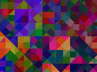 Grafisch spel met ruitjes die worden gecombineerd met decoratieve patronen en vormen door middel van overlays...Minimalistisch en kleurrijk.