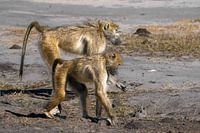 De wildernis van Botswana blijft verrassen! Tijdens een zonovergoten wildrit zagen we dit opmerkelijke paar bavianen ijverig voedsel zoeken op de stoffige grond. De intensiteit van hun zoektocht trok onze aandacht, maar wat volgde was werkelijk verbazingwekkend.