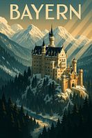 Vier de romantische schoonheid van Beieren met deze Bayern Art Deco reisposter. Gedomineerd door het wereldberoemde kasteel Neuschwanstein, omringd door diepe alpenbossen en besneeuwde bergtoppen, weerspiegelt het kunstwerk de sprookjesachtige geest van Zuid-Duitsland. Ontworpen in een elegante Art Deco stijl, combineert de poster gedurfde geometrie, sfeervolle verlichting en tijdloze vintage charme. Ideaal voor iedereen die van de Beierse cultuur, geschiedenis en landschap houdt. Dit kunstwerk straalt avontuur, majesteit en sereniteit uit. Of je nu door Beieren hebt gereisd, ervan droomt om het te bezoeken of gewoon historische kastelen bewondert, deze muurkunst creëert een brandpunt van inspiratie. Perfect voor thuis, op kantoor of in creatieve ruimtes, en prachtig in combinatie met andere Europese reisposters. Breng de grootsheid van Beierse landschappen en de allure van kasteel Neuschwanstein in je interieur met deze Bayern muurkunst, een viering van cultuur, architectuur en natuurlijke pracht.