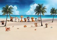 In deze vrolijke en zonovergoten strandscène heeft een bonte verzameling dieren zich op een wit zandstrand verzamelt tussen de palmbomen. Van een nieuwsgierige giraffe tot een ondeugende krab en een stoere kleine tijger. De speelse compositie, het warme licht en de heldere kleuren maken dit kunstwerk perfect voor kinderkamers of ruimtes…