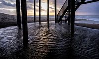 Het stormt op Texel. Schuimvlokken waaien over het strand en de storm heeft het water opgestuwd tot onder het strandhuis.