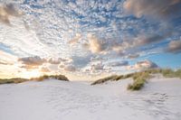 Beautiful evening at the North Sea beach in the Netherlands with dynamic clouds