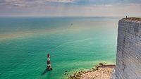 Een 16x9 foto van Beachy Head vuurtoren, gelegen in het Engelse Kanaal onder Beachy Head in East Sussex aan de Engelse zuidkust. De vuurtoren is 43 meter hoog en werd in oktober 1902 operationeel.