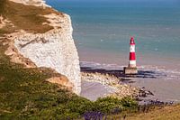Beachy Head vuurtoren bij de krijtrotsen aan de Engelse zuidkust in de buurt van Eastbourne (East Sussex).