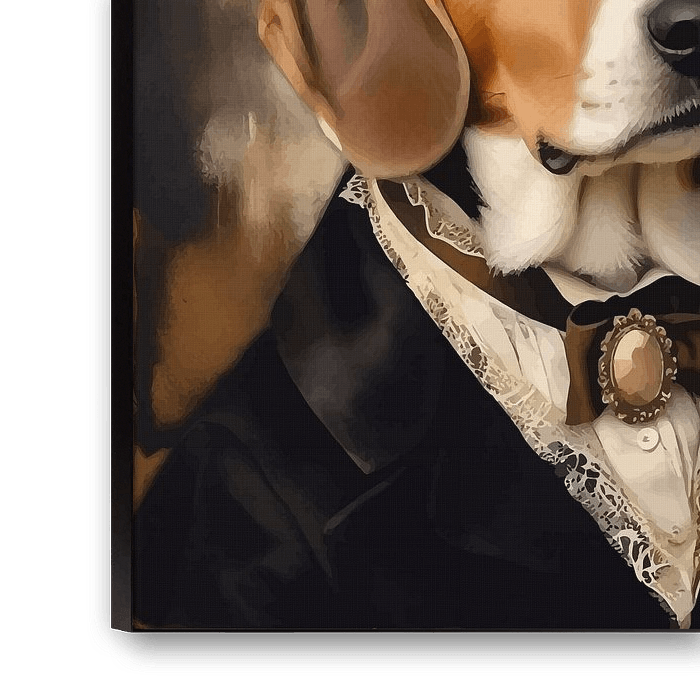 Nieuwsgierig en temperamentvol wordt de Beagle hier afgebeeld met speelse waardigheid, waardoor een heerlijke balans ontstaat tussen Victoriaanse verfijning en zijn van nature vrolijke persoonlijkheid. De schilderstijl benadrukt zijn expressieve ogen, levendige houding en gevoel voor avontuur, terwijl de vintage tinten een klassieke charme geven die de emotionele band verdiept. Het kunstwerk vat de essentie van een trouwe metgezel die altijd klaar is om de wereld te verkennen - neus eerst - maar vindt evenveel plezier in het krullen aan de zijde van degenen die hij liefheeft. De penseelstreken vloeien met zachte bewegingen, waardoor de scène een zachte verhalende kwaliteit krijgt die doet denken aan dierbare familiegeschiedenis. De Beagle is zowel de held van het portret als het hart van het huis, waardoor dit stuk onweerstaanbaar is voor mensen die waarde hechten aan kunst vol persoonlijkheid. Verzamelaars zullen de verfijning achter de speelsheid waarderen - een perfecte mix die de verrukkelijke geest van de Beagle verheft tot tijdloze kunst die het bewonderen waard is.