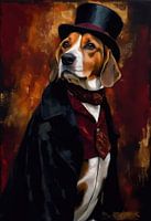 Nieuwsgierig en temperamentvol wordt de Beagle hier afgebeeld met speelse waardigheid, waardoor een heerlijke balans ontstaat tussen Victoriaanse verfijning en zijn van nature vrolijke persoonlijkheid. De schilderstijl benadrukt zijn expressieve ogen, levendige houding en gevoel voor avontuur, terwijl de vintage tinten een klassieke charme geven die de emotionele band verdiept. Het kunstwerk vat de essentie van een trouwe metgezel die altijd klaar is om de wereld te verkennen - neus eerst - maar vindt evenveel plezier in het krullen aan de zijde van degenen die hij liefheeft. De penseelstreken vloeien met zachte bewegingen, waardoor de scène een zachte verhalende kwaliteit krijgt die doet denken aan dierbare familiegeschiedenis. De Beagle is zowel de held van het portret als het hart van het huis, waardoor dit stuk onweerstaanbaar is voor mensen die waarde hechten aan kunst vol persoonlijkheid. Verzamelaars zullen de verfijning achter de speelsheid waarderen - een perfecte mix die de verrukkelijke geest van de Beagle verheft tot tijdloze kunst die het bewonderen waard is.