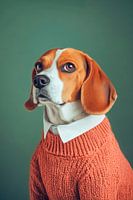 Met zijn charmante uiterlijk en karakteristieke grote oren straalt deze beagle een mix van nieuwsgierigheid en stijl uit. De knusse, oranje trui geeft hem een vleugje comfort, terwijl de witte kraag hem een lief en charmant tintje geeft. De zachte ogen lijken verhalen te vertellen en zijn attente aard nodigt uit tot glimlachen.