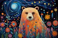 Bear Necessities is een digitaal schilderij van dromende Grizzlybear. De levendige kleuren en details van het werk prikkelen de zintuigen en brengen leven in elke kamer.