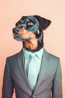 Met zijn elegante houding en mooie pak straalt deze Beauceron charmant zelfvertrouwen uit. Zijn uitgesproken, mannelijke gezicht en alerte ogen trekken ieders aandacht. De combinatie van stijlvolle outfit en trouwe, waakzame uitdrukking creëert een amusante maar indrukwekkende verschijning die geen vragen onbeantwoord laat.