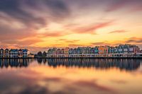 In dit werk zie je een rij kleurrijke huizen die perfect weerspiegeld worden in het rustige water, waardoor een harmonieuze balans ontstaat tussen werkelijkheid en reflectie. Als je goed kijkt, vallen subtiele details op, zoals de individuele kleuren van de huizen, de zachte rimpelingen in het water en de strepen van wolken in de lucht, die de scène diepte en sereniteit geven. Mijn inspiratie kwam van de unieke charme van Nederlandse architectuur en de rust van kleine watereilanddorpjes. De sfeer die ik wilde neerzetten is kalm maar warm, met het gouden licht van de ondergaande zon en het stille ritme van het leven aan het water. Dit werk roept een gevoel van rust en reflectie op en nodigt uit om eenvoudige, voorbijgaande momenten te waarderen. Door fotografische technieken te gebruiken die licht, symmetrie en kleurharmonie benadrukken, komt de emotie en het verhaal achter dit serene landschap tot leven.