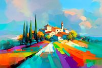 Modern kleurrijk kunstwerk van het landschap in Toscane.