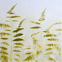 Prachtig enigszins abstract schilderij van varens. Er is gebruik gemaakt van acrylverf en afdruktechniek op canvas. Dit geeft een mooi natuurlijk en los resultaat. Passend bij diverse trends en stijlen.
