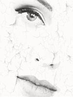Close up, gezicht, craquelé, vrouw, oog, mond, grijstinten, zwart wit, eyecatcher, portret, minimalistisch, eenvoud