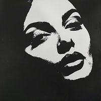 Monochromatische poster van een mooie vrouw, in het vooraanzicht, uitgevoerd in zwart-wit. Deze afbeelding straalt een klassieke en tijdloze charme uit, met de kenmerkende esthetiek van de retrostijl. De gedetailleerde lijnen en het subtiele contrast benadrukken de elegantie en schoonheid van het portret.