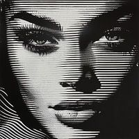 Monochromatische poster van een mooie vrouw, in het vooraanzicht, uitgevoerd in zwart-wit. Deze afbeelding straalt een klassieke en tijdloze charme uit, met de kenmerkende esthetiek van de retrostijl. De gedetailleerde lijnen en het subtiele contrast benadrukken de elegantie en schoonheid van het portret.
