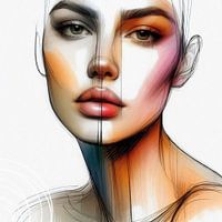 Moderne kunst, een digitaal vervaardigd portret van een vrouw, een minimalistische schets in zwarte lijnen, die ik vervolgens heb ingekleurd.
