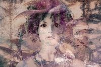 Dit portret in pasteltinten is opgebouwd uit een aantal lagen in Photoshop. Het lijkt of de vrouw in de zee tussen de vissen zwemt of ziet ze de vissen door het glas van een aquarium.