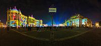 De beroemde Berlijnse Bebelplatz in het historische centrum van Berlijn. Verlichte gevels in bijzonder licht, ter gelegenheid van een lichtfestival in Berlijn.