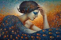 Haal een stukje kunstgeschiedenis in huis met dit prachtige portret van een vrouw, gemaakt in de stijl van mozaïek en pointillisme. Elk stukje van het mozaïek is met zorg en precisie geplaatst, en de pointillistische techniek geeft het portret een bijna surrealistische uitstraling.