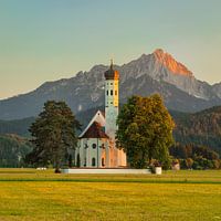 Bedevaartskerk St.Coloman bij zonsondergang, Allgäu, Beieren, Duitsland