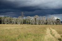 A threatening thunderstorm is coming up above the High Fens, a raised bog in the Eifel on the border between Belgium and Germany.
