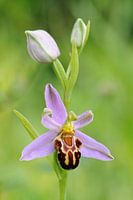 Bijenkruid ( Ophrys apifera ), bloeiwijze, een bijzonder mooie in het wild groeiende orchidee in ons land, wildernis, Europa.