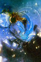 Abstractie, blauw, kleur trend sereniteit, digitalart, illustratie, insecten, sprankelende druppels, dauwdruppels, grafiek, digitaal schilderen veranderd