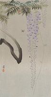 Bee naast bloeiende Wisteria, Ohara Koson (1920)