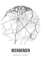 Zwart-witte landkaart, stratenplan of plattegrond van Beekbergen. Beekbergen is gelegen op de Veluwe, in de gemeente Apeldoorn, provincie Gelderland. Op de stadskaart zijn alle openbare wegen in Beekbergen opgenomen. Verder is de kaart voorzien van de coördinaten van het centrum van Beekbergen.