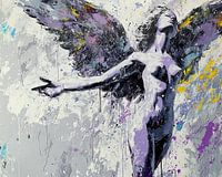 Details: engel, vleugels, grijs, wit, geel, paars, abstract, street art, dynamisch, energie, Raw beauty