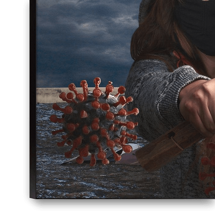Koop dit portret Beeldbewerking: De Strijd Tegen de Covid-19 Pandemie in 2020 - Symboliek en Veerkracht in Kunst van Elianne van Turennout op canvas, aluminium dibond, (ingelijste) fotoprint, behang en ArtFrame, op maat geprint in Fine-Art kwaliteit.