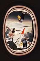 Breng een vleugje speelsheid en verwondering in je huis met deze unieke beeldmanipulatie van eenden die meeliften met een vliegtuig. Deze levendige afbeelding toont eenden die moeiteloos door de lucht zweven, hun vleugels spreidend terwijl ze meedeinen op de thermiek van het vliegtuig. Dit boeiende beeld prikkelt de verbeelding en nodigt uit tot dromen van avonturen in de lucht.