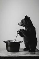 Stel je een charmante beer voor die enthousiast in een keuken staat te roeren. Zijn poot houdt een grote lepel vast terwijl hij een eenvoudige pot vol lekkernijen roert. Dit grappige en charmante motief brengt leven in elke moderne keuken en zorgt voor een goed humeur tijdens het koken en gezellig samenzijn.