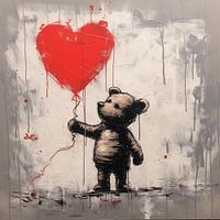 Beer met ballon (hart) donkere kleuren schilderij die een prachtige toevoeging zal zijn aan elke ruimte. Met zijn unieke en stijlvolle uitstraling is het een ware eyecatcher. De schitterende kleuren en het bijzondere ontwerp maken dit kunstwerk 100% uniek en origineel. Het is de perfecte fotoprint om je interieur helemaal af te maken.