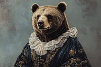 Een charmant en opvallend portret van een beer, gekleed in een klassieke, gedetailleerde Victoriaanse outfit. Dit unieke ontwerp brengt een vleugje humor en verfijning samen, waarbij de beer met zijn imposante uitstraling en sierlijke kleding direct in het oog springt. Perfect voor liefhebbers van bijzondere kunst die een twist geven aan klassieke portretten. Het werk biedt een geweldige toevoeging aan elk interieur, vooral in ruimtes waar een beetje karakter en speelsheid welkom zijn. Laat je inspireren door de combinatie van dieren en klassieke stijl, en voeg dit stijlvolle stuk toe aan je interieur.
