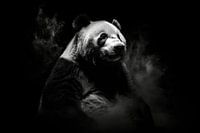 Een majestueuze panda troont in een dramatische zwart-witafbeelding, gehuld in mysterieuze mist. Zijn zachte, expressieve ogen stralen kalmte en gratie uit, terwijl het krachtige wezen de kracht van de natuur belichaamt. Ideaal voor de woonkamer, waar het een harmonieuze blikvanger is die de sfeer verlevendigt en gesprekken stimuleert.