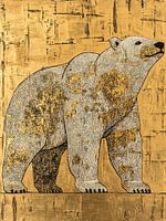 Beer - Op dit dieren schilderij zie je een grote witte beer op een gouden achtergrond, met duidelijke lijnen en een opvallende textuur die het geheel een modern gevoel geeft.