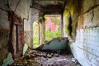 Dit is een foot van een relatief kleine kamer in een ontzettend groot verlaten complex. De kamer is, zoals je ziet, in hevig verval en er groeien zelfs planten aan de muur.