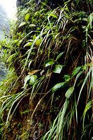 Deze klifwand is helemaal begroeid met varens en grassen. Doordat het altijd vochtig is door de waterval ernaast blijven de planten weelderig groen.