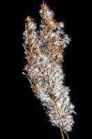 Dit is een lisdodde waarvan de pluizen, de zaden, niet zijn uitgewaaid. In de herfst en winter van 2022-23 is er eigenlijk geen storm geweest die alles kaalblies. Dus staan de oude lisdoddes gewoon nog in de zon te wachten. Misschien op het nieuwe seizoen om het opnieuw te proberen. Deze lisdodde werd verlicht door de felwitte winterzon…