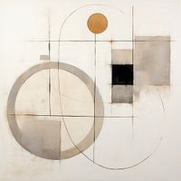 Details: abstract, geometrisch, cirkels, vierkanten, lijnen, beige, bruin, zwart, wit, balans, Japandi